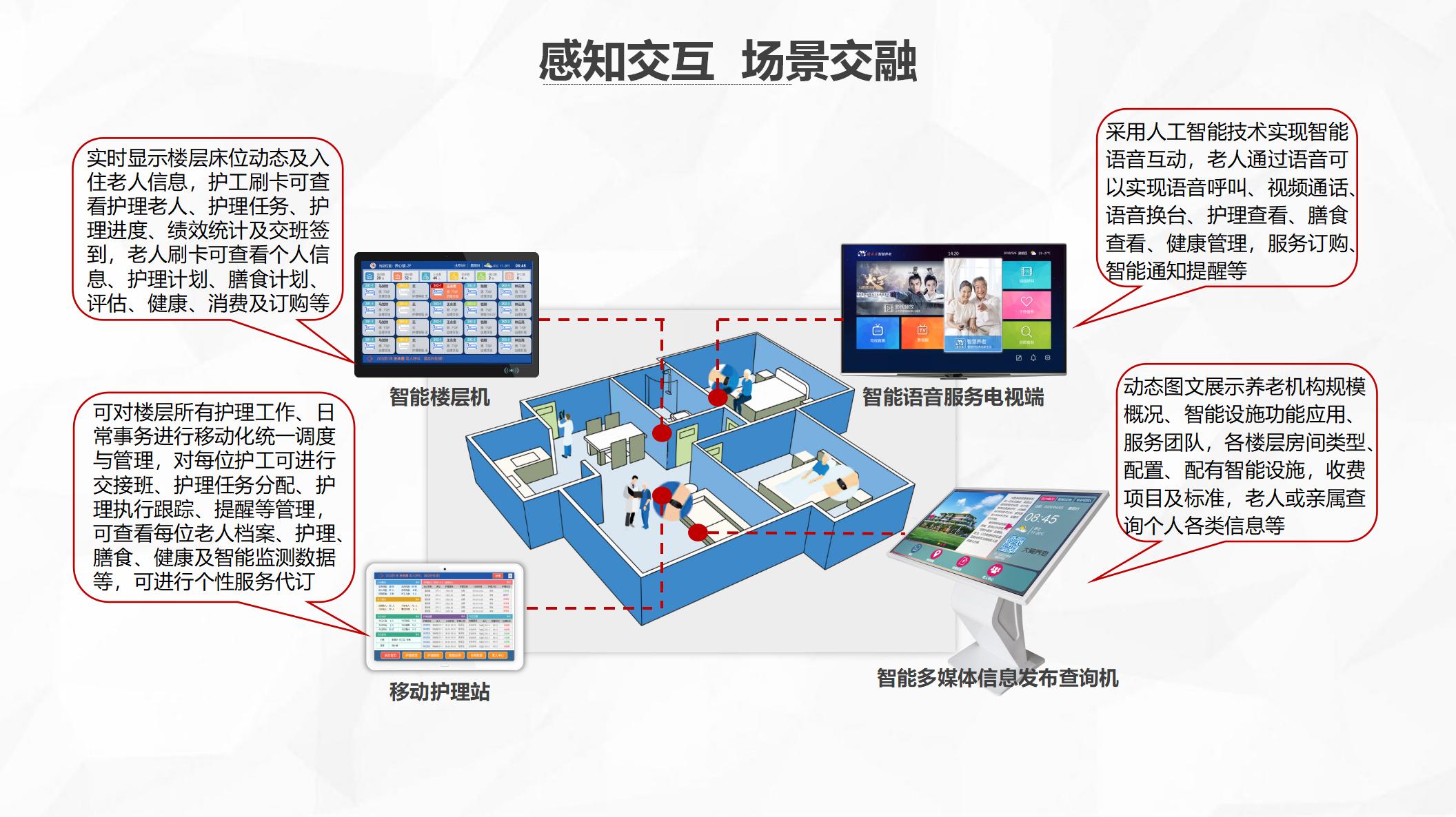 智能养老系统打造智慧养老应用主要涵盖安全防护类、照护服务类、健康服务类和情感关爱类4个类别。这些场景有些是长期困扰亟待解决的,比如认知症老人防走失、老年人卧床护理等场景;盛东细分的智慧养老应用场景,让更多人知道“老人需要什么”,养老管理系统为老年人提供实时、快捷、高效、低成本,同时具备物联化、互联化、智能化特征的养老服务。此外,智慧养老产品和服务要以帮助老年人“赋能”为前提,不能简单替代他们尚存的生活能力,而是增强老年人自理能力,提升他们的生活品质。